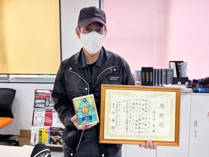 店舗近くでの適切な事故対応や、道に迷われた方の保護など冷静な判断と素早い行動が評価されての表彰です♪