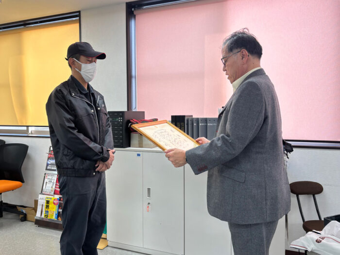警察署での贈呈式後、社内であらためて表彰させていただきましたのでご紹介いたします。