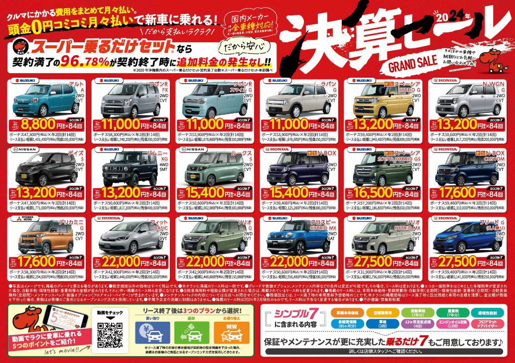 期間は2月29日までの開催ですので、新車ご検討中の方、スーパー乗るだけセットにご興味のある方、説明を聞くだけでも大歓迎です!ぜひこの機会にご来店お待ちしております。