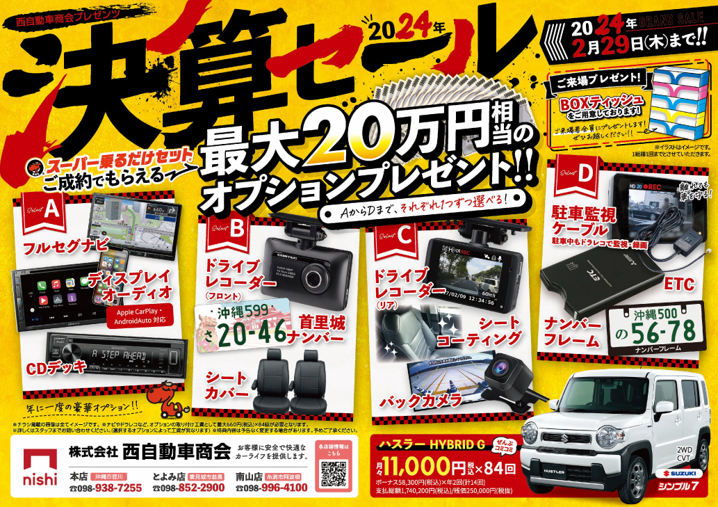 今回2024年は20万円相当分の選べるオプションプレゼント❗過去最大級の決算セールとなってます😊